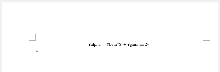 一例を示します.まず,「\打ちたい文字の綴り」を打ち込んでいきます (Word上では下図のように,円記号で表示される場合があります).