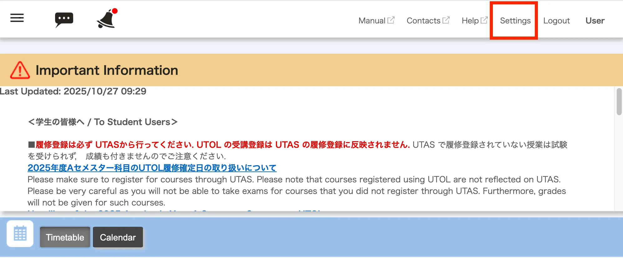 The following explains both the common (overall UTOL) settings and per-course notification settings.