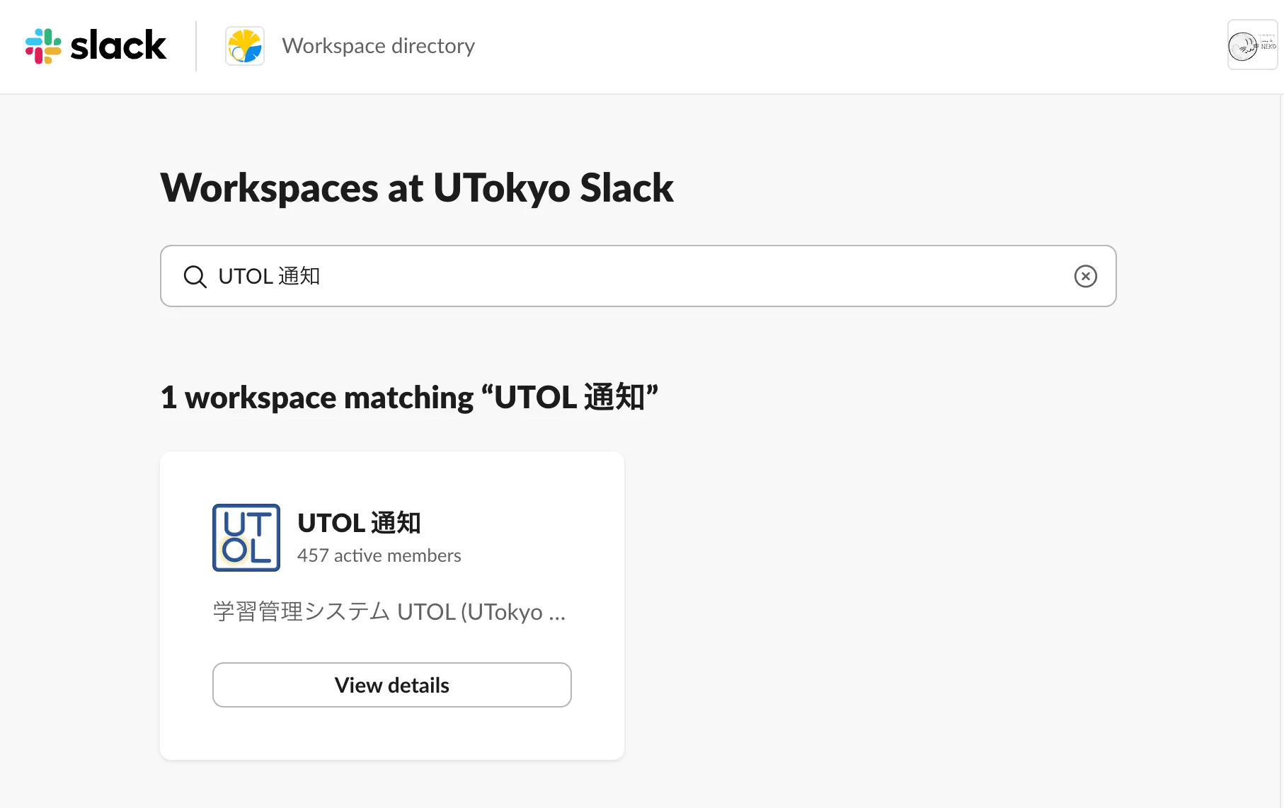 - Open the “Workspaces at UTokyo Slack” and follow Procedures 1 to 5 in Joining an open workspace in UTokyo Slack”.