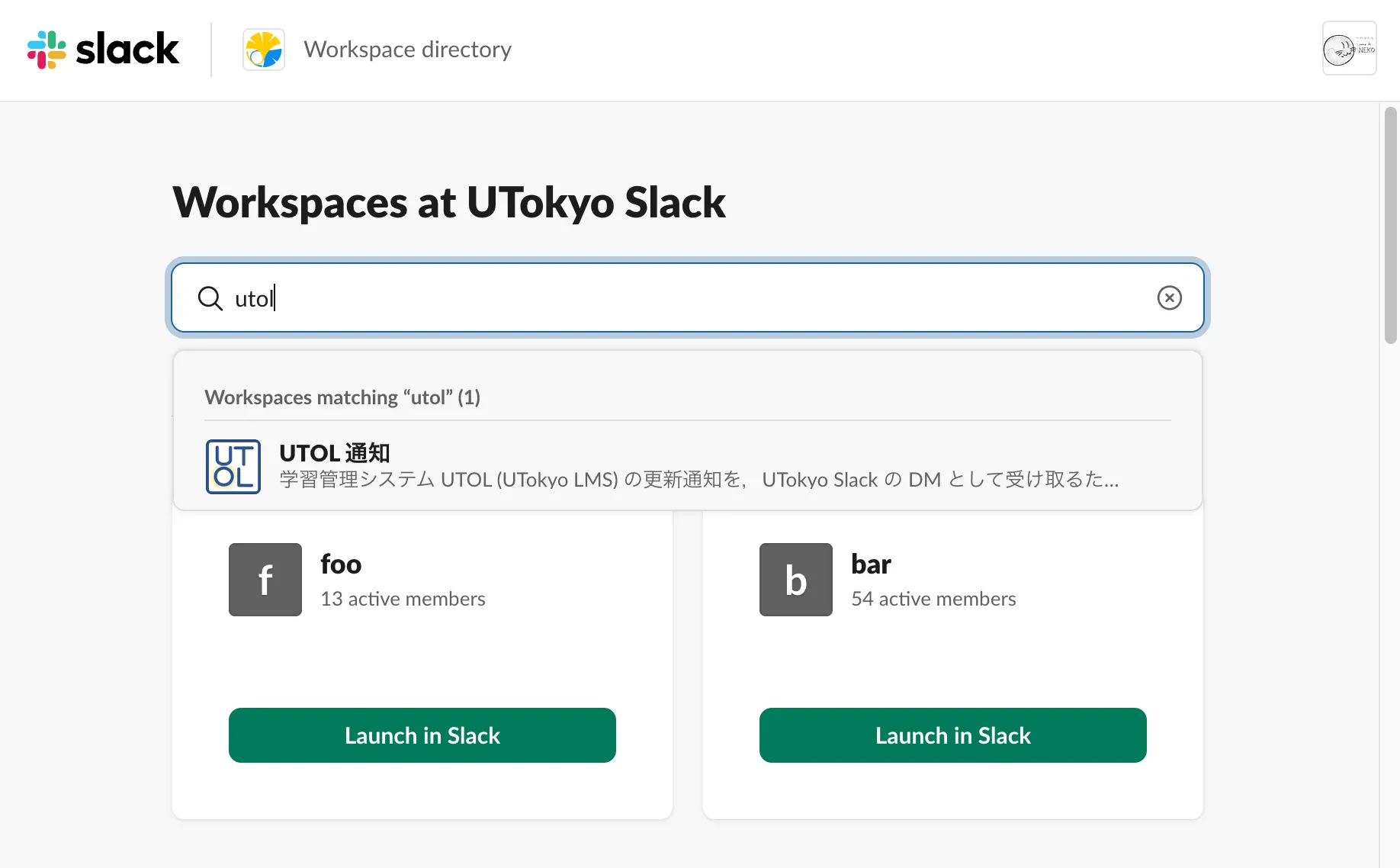 | UTokyo Slack | ◯ | × | Direct messages with UTOL通知” (Slack App) |