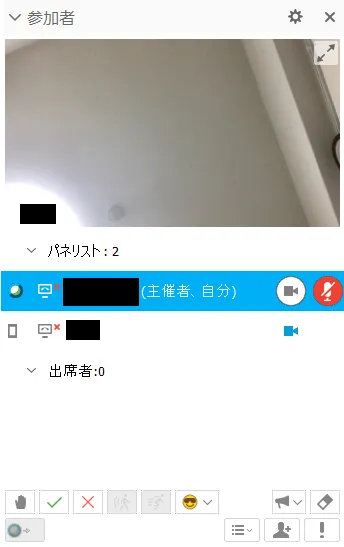 • Participant: Participants can share their camera screen and mute/ unmute their microphone. However, if organizers or presenters mute participants, the unmute function becomes locked.