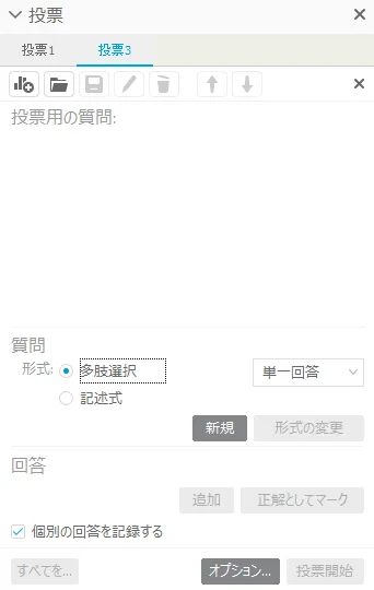 • Poll panel allows participants to answer quizzes and questionnaires. Only presenters can start polling.