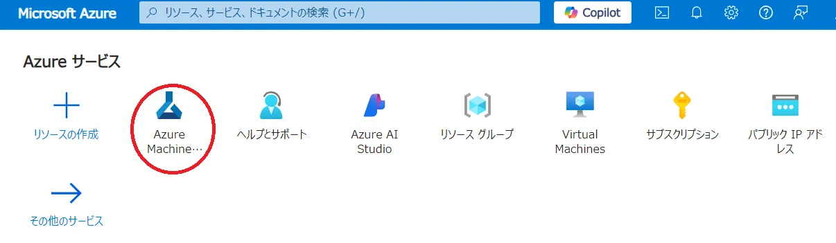 • Azureサービスの一覧の中からAzure Machine Learningを選択します.