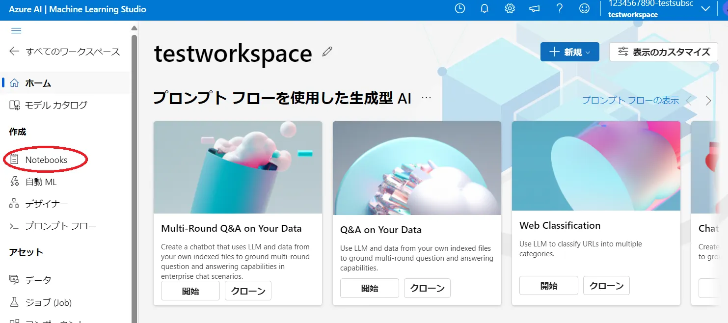 AI ハブ のトップページに遷移するので,スタジオの起動をクリックしてください.
