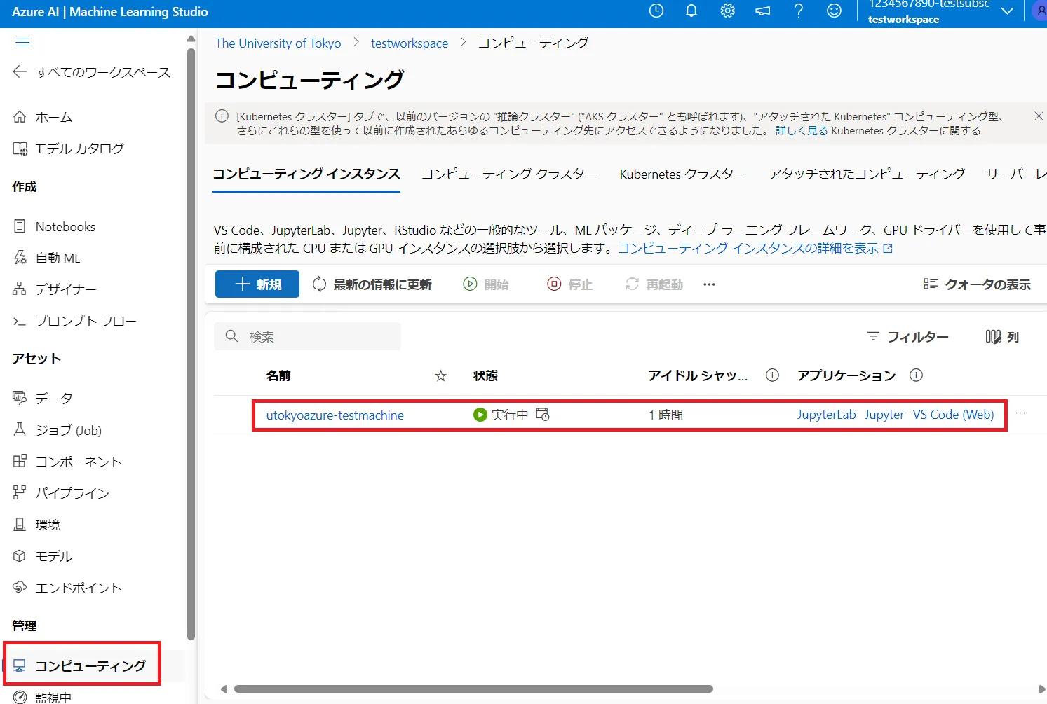 • 左の一覧からコンピューティングを選択すると,作成したマシンのステータスが表示されます.