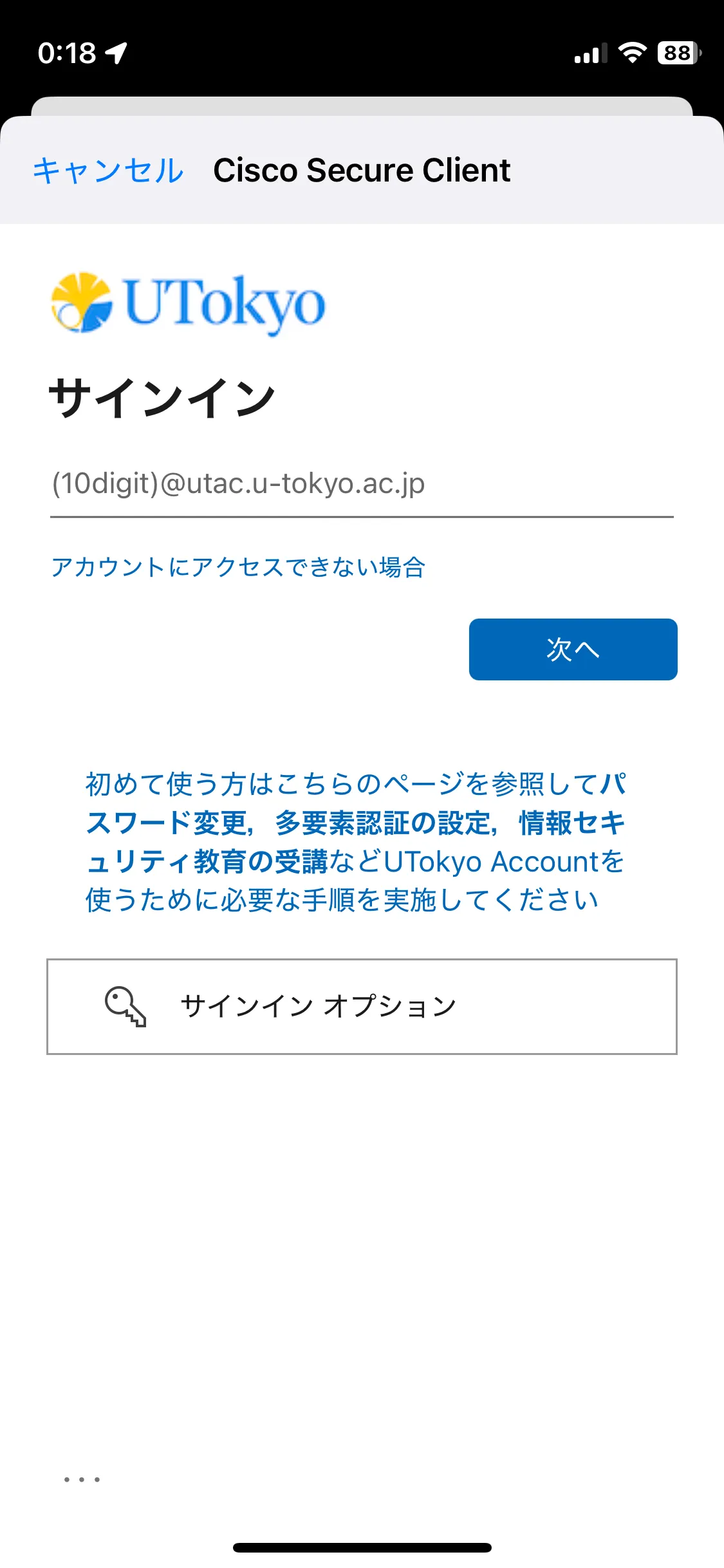 UTokyo VPNの利用にあたっては,UTokyo Accountの多要素認証の有効化が必須であるほか,所定の時期に情報セキュリティ教育の受講を完了されなかった場合に利用資格が停止されます.これらについてUTokyo VPN全体の説明ページで説明しておりますので,まずはじめにそちらをご確認の上,以下の手順を行ってください.