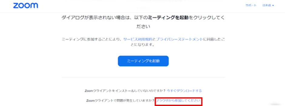 2. ブラウザ上に「ミーティングを起動」というページが表示されます.