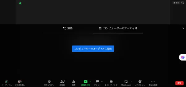 • ミーティングに入室した後でオーディオ接続を求められた場合,オーディオの設定を行い,「コンピューターオーディオで参加」を押してください.